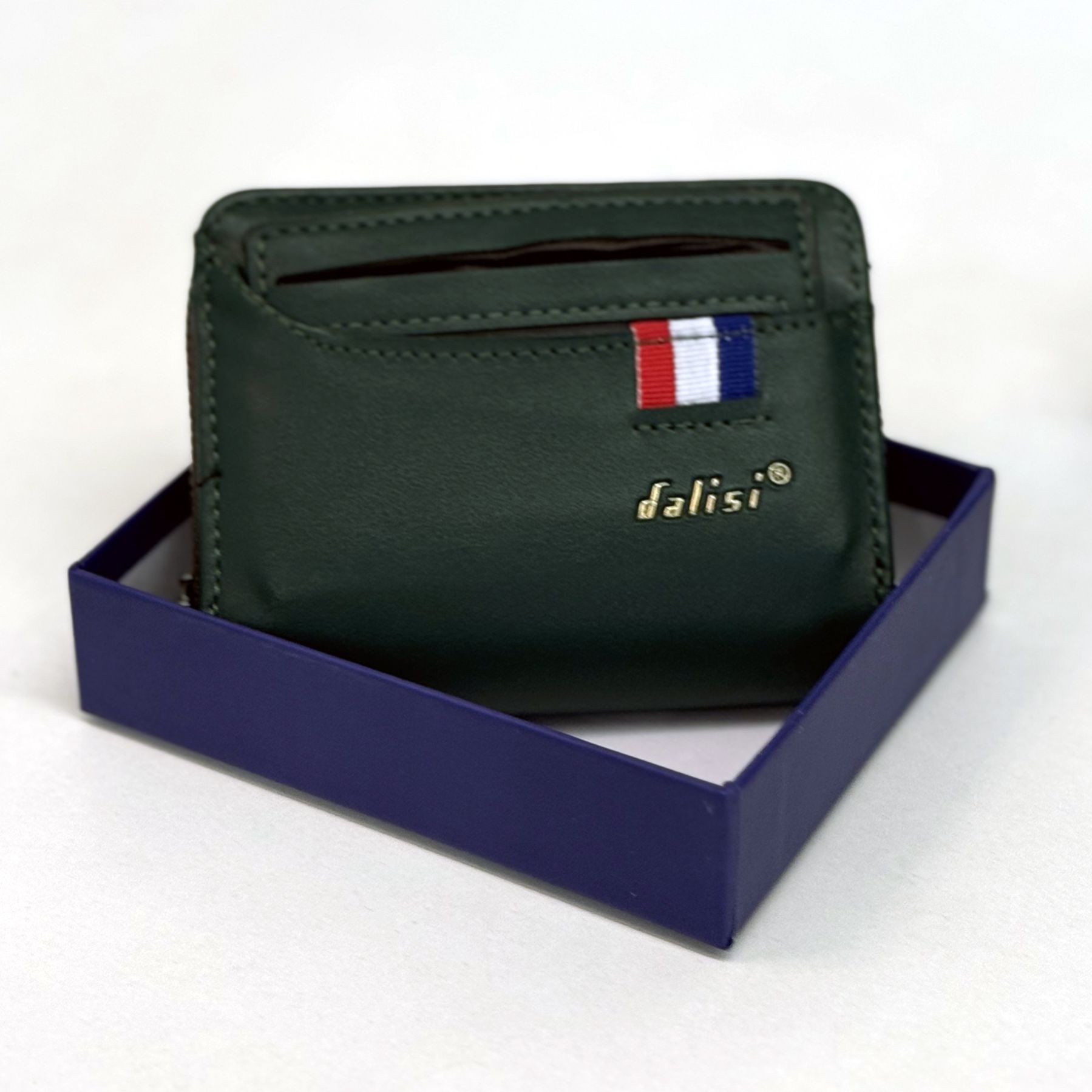 0 Review Of Product Dalisi men's dark green wallet with a tricolor stripe detail