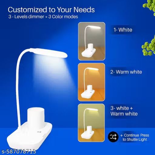 Name : OSRING S-978 3 Colour Mode Rechargeable LED Study/Table/Desk Lamp for study | with Pen Holder | 6 Month Warranty,Plastic, White