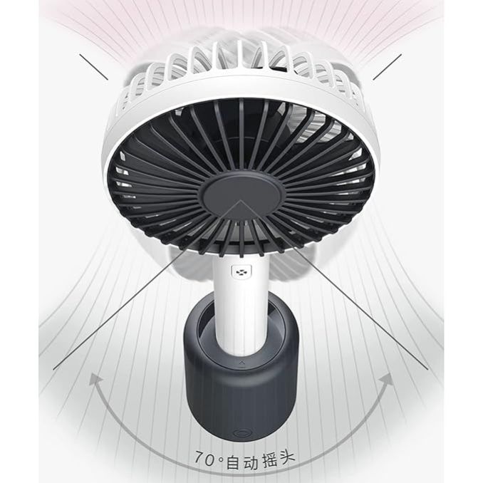 Portable Handheld Fan, Low Noise Small Handheld Fan Automatic Shaking Head USB Rechargeable for Office
