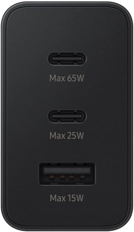 65W Samsug Trio Port Charger Adapter | Super Fast Type C to Type A Wall Adaptor Compatible with Samsung Galaxy S24 Ultra/S24 plus/S24/S23 ultra/S23/S23 fe/S22/S21/A55/F55/M55/Z fold/flip/5/4/3, Black