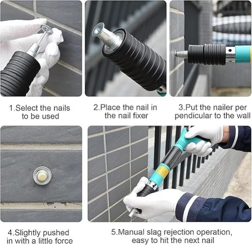 - ✦ ???????????????? ???????? ???????????? : This Lightweight Concrete Nail Gun Is Hand-Fed. Easy To Use, Just Five Easy Steps: 1. Wear Protective Glasses, Gloves And Earplugs; 2. Choose The Nail; 3. Nail Gun Vertically On The Workplace, Ready To Fire; 4. Vertical Force On The Wall; 5. Hold The Muffler Cap And Compress It Several Times. If That Doesn'T Work, Clean Off The Residue Before Trying Some More Nails.