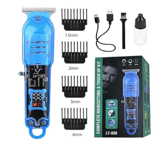 T808 Unisex-Adults Professional Rechargeable Transparent Electric Hair Clipper Stainless Steel Blade with LCD Digital Display for Salon Home Use | Multicolor